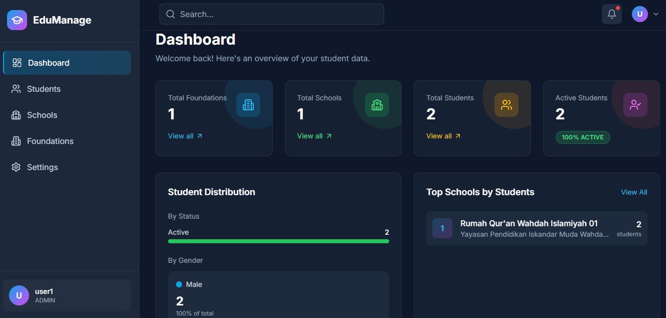 A fullstack web application for managing student data across multiple schools under an educational foundation. Built with modern technologies including Next.js, React, Node.js, Express, and MySQL with Prisma ORM.